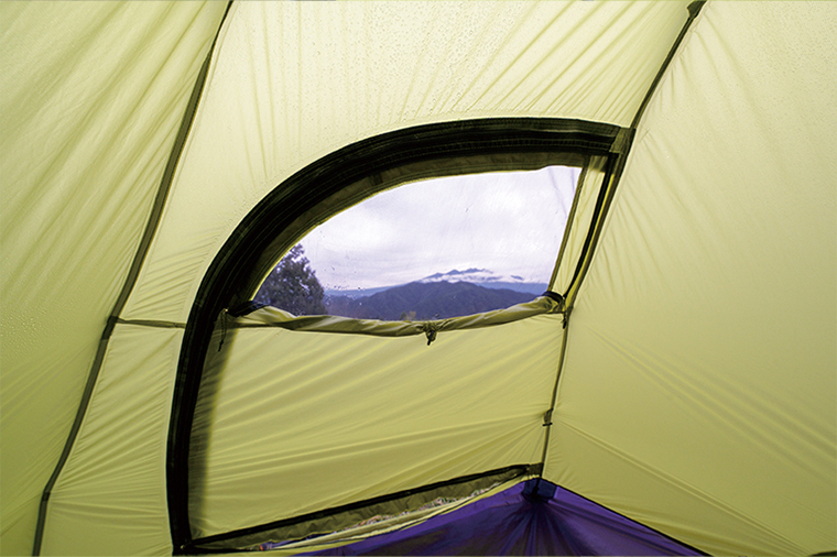 必要最低限の機能に絞り込みつつ2人分の快適な居住空間をもった最軽量自立式ツェルト。
