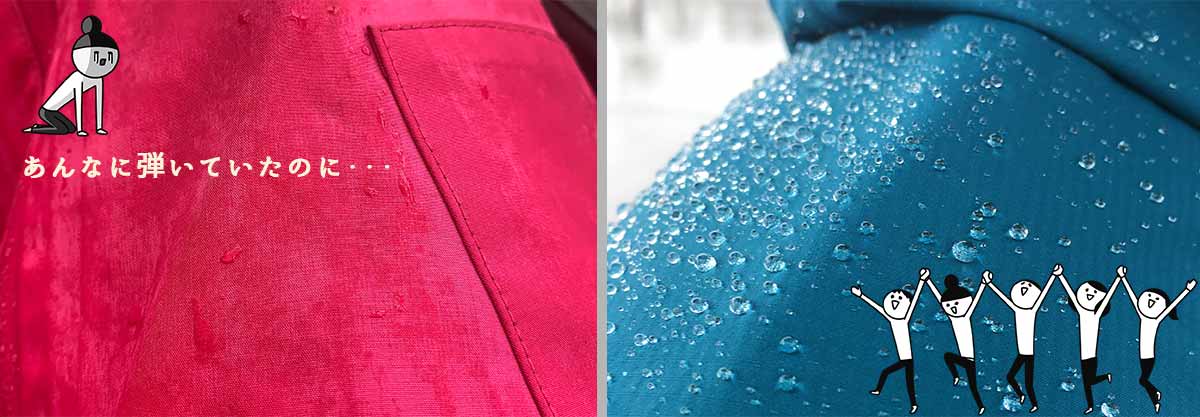 着用しているうちにいろいろな状況で、撥水力は低下していきます。