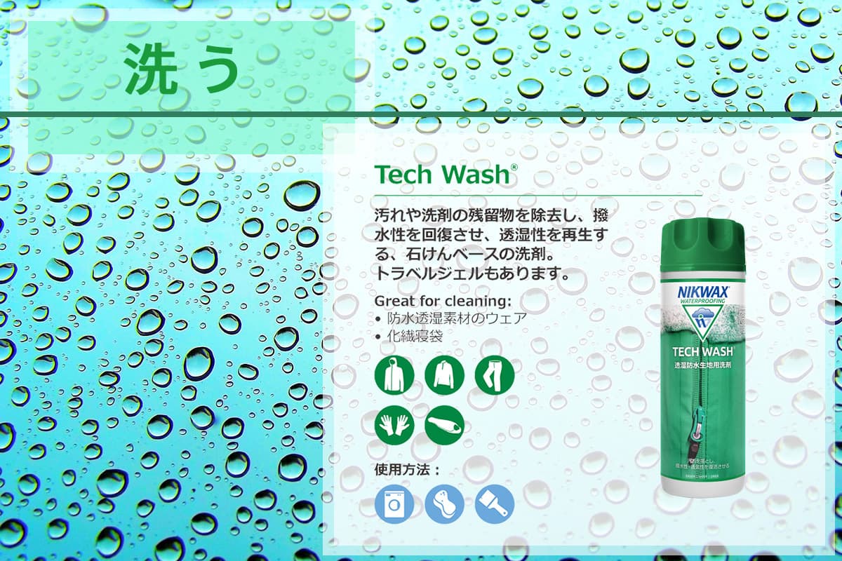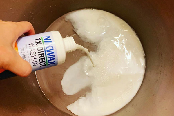 NIKWAXで処理する前に必ず洗濯表示を確認し洗濯機や手洗いなど水で洗濯できるウエアか確認してからご使用ください。
