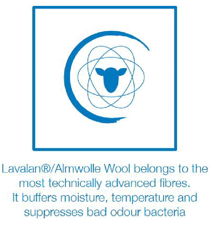 アルムウールはドイツ・フランケンの専門家である Bauer Vliesstoffe によって生産されています。アルムウールは洗濯可能で、従来のウールよりも早く乾きます。アルムウールに使用されているウールは、アルプス地方の羊から採取されたものです。
