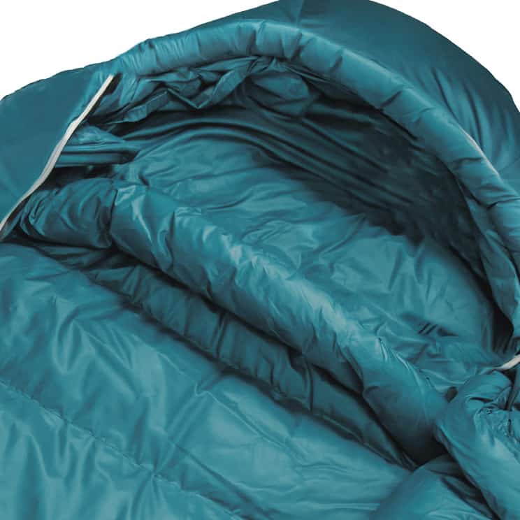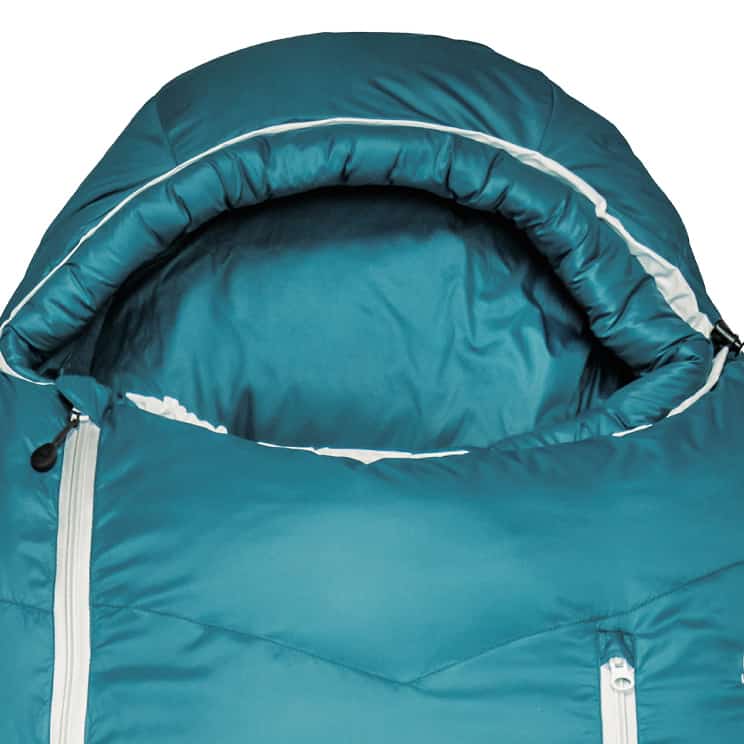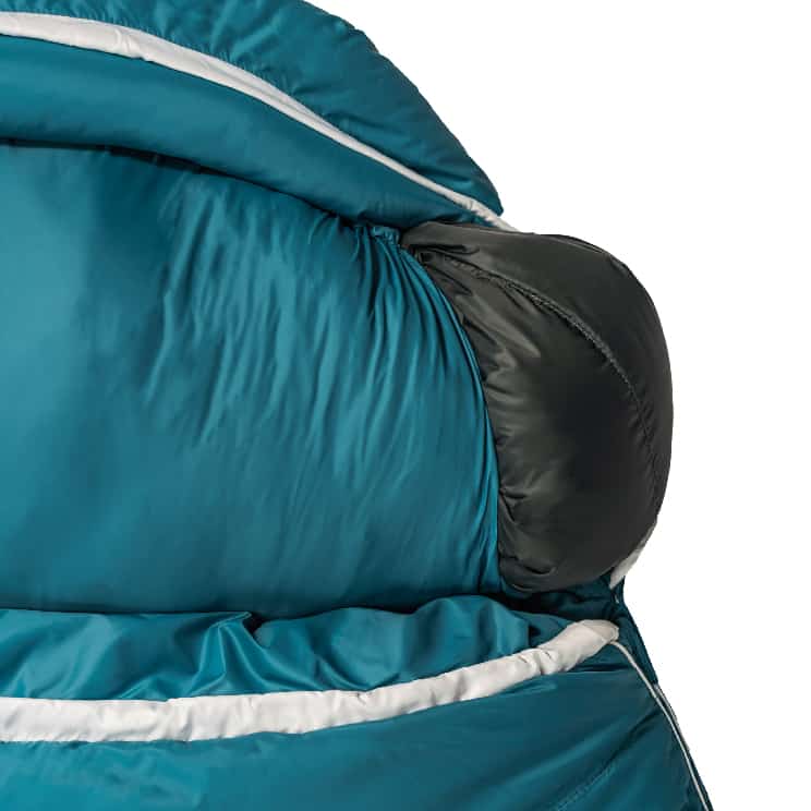 内側丁度首の位置にあるフィリング入りのチューブ0度以下ではネックバッフルには大きな意味があります。ここで暖まった寝袋の空気が拡散するのを防ぎます。