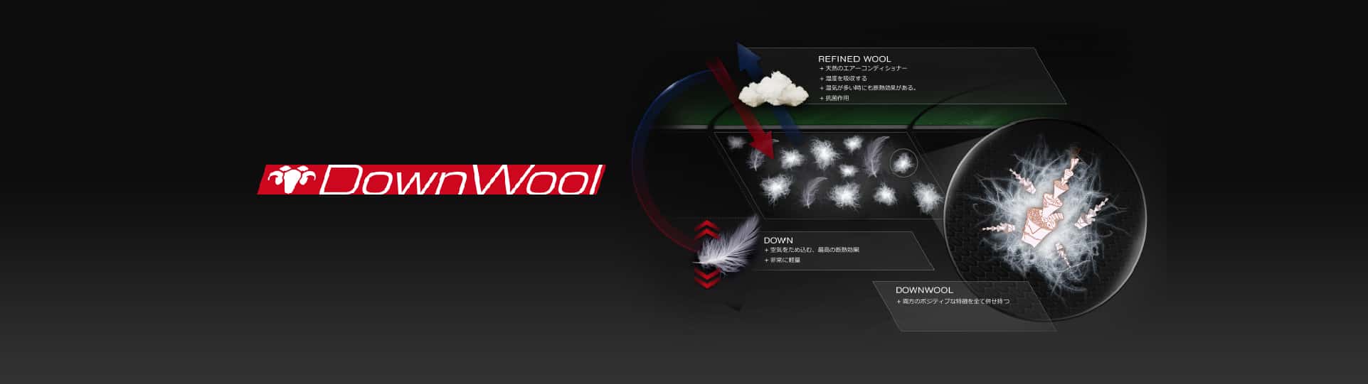 ダウンウールは、ダウン(最高の断熱性)とウール(完璧な調湿機能)の利点を兼ね備えています。